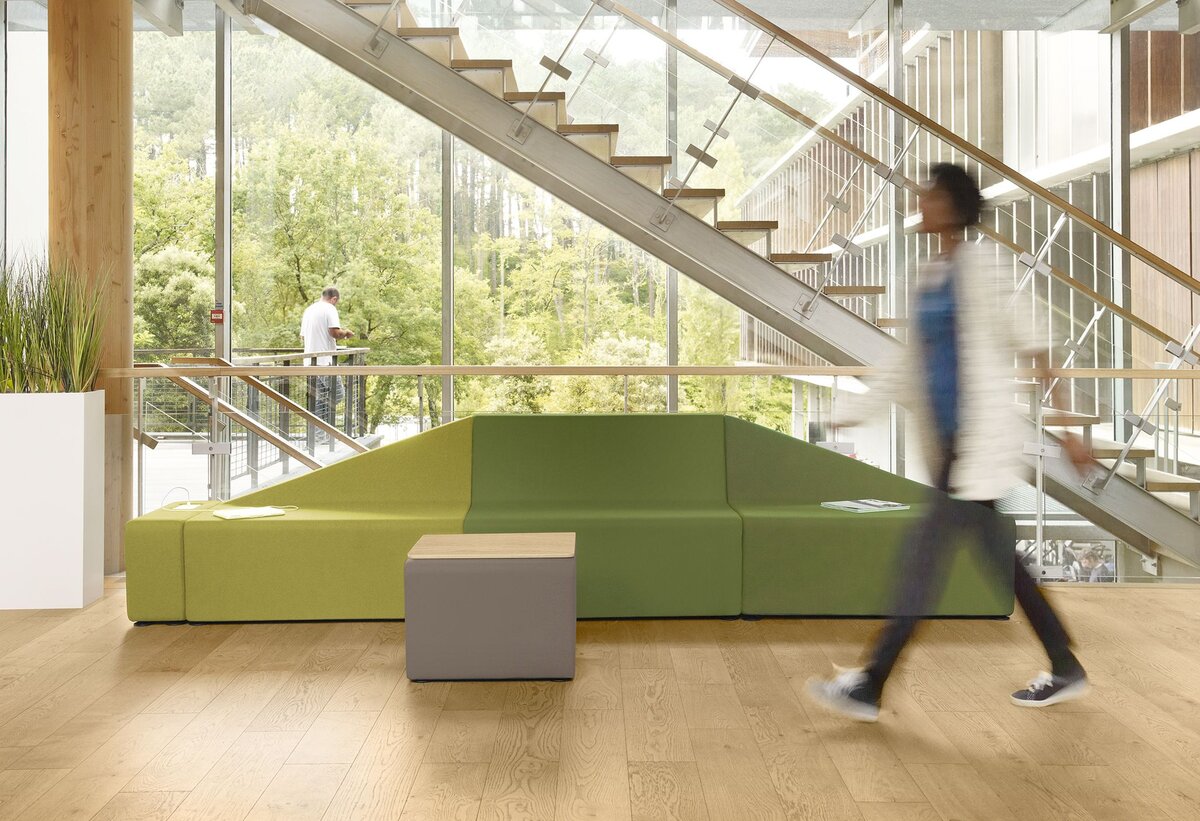 Proposée en deux tailles (Medium ou Large), la banquette Mendi permet de créer des formes originales et graphiques au sein de vos locaux. Avec un choix parmi 16 modules différents, incluant ces dossiers inclinés, vous concevez un espace unique, en totale harmonie avec votre charte graphique.