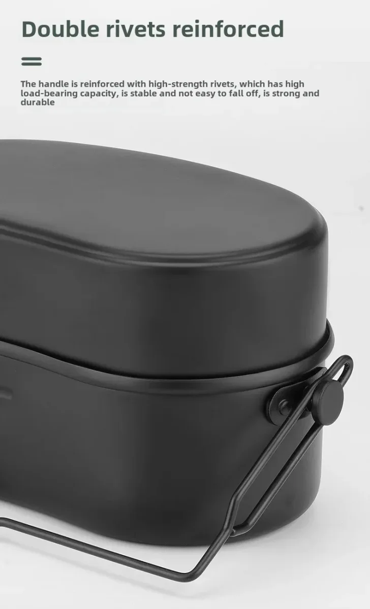 Cette boîte à lunch en aluminium adopte une structure militaire allemande : légère, robuste et pensée pour l’extérieur. Sa double couche isole efficacement les aliments et sa poignée intégrée facilite le transport, même en déplacement.