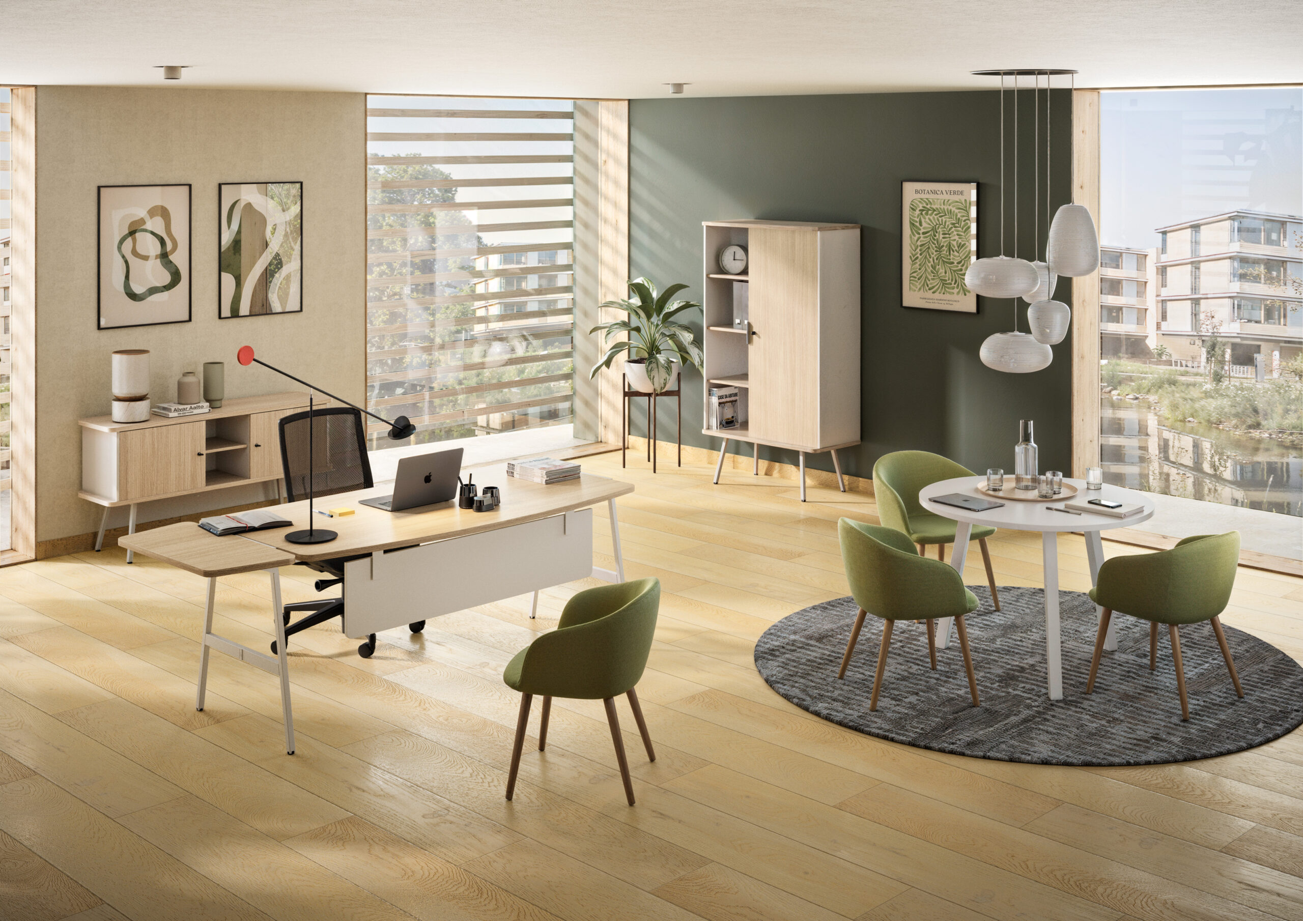 Une signature esthétique forte qui humanise l’espace de direction et s’inscrit dans la tendance biophilique.