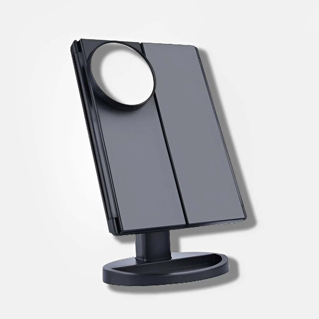 Composé de trois panneaux pivotants , ce miroir offre une vision complète, éclairée par des LED intégrées pour une clarté optimale même dans des conditions de faible luminosité. Alimenté par une batterie rechargeable , ce miroir s’adapte à votre style de vie, vous permettant de briller où que vous soyez.