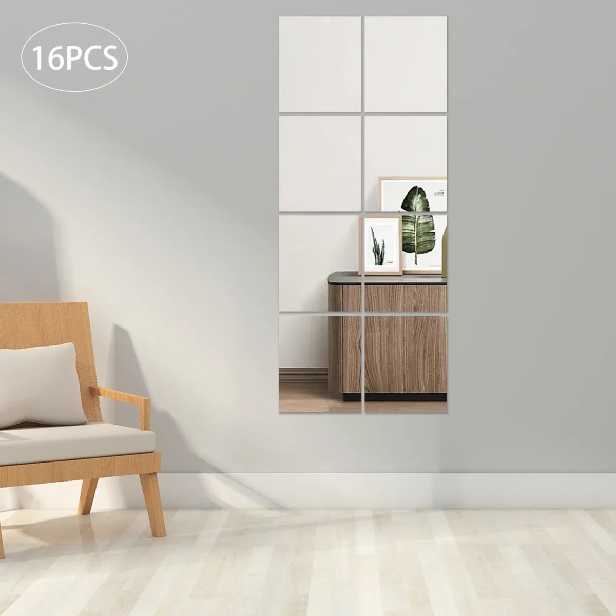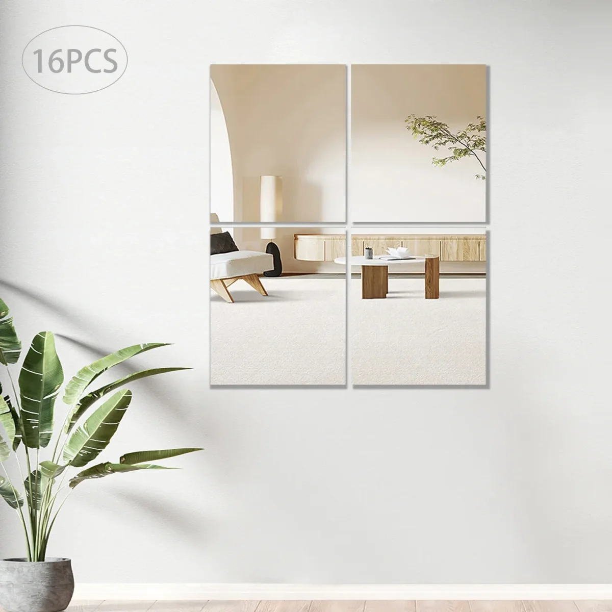 Les 16 dalles se disposent librement : en grille complète pour un grand miroir, en ligne verticale pour un effet couloir, ou dispersées pour une touche déco contemporaine. Adaptez la configuration à votre espace, que ce soit au plafond d’une chambre, dans une salle de bain ou sur un mur de salon.