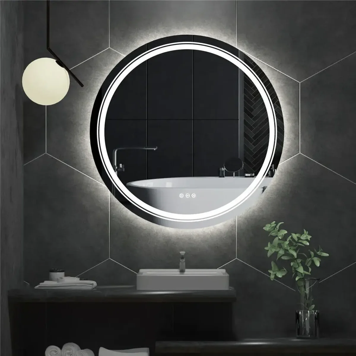 Le diamètre 60 cm est le format de référence du miroir rond lumineux salle de bain : suffisamment grand pour un usage confortable seul ou en duo, suffisamment compact pour s’intégrer dans toutes les configurations murales, y compris les petites salles d’eau. Posé en duo au-dessus d’un plan double vasque, il crée un effet symétrique particulièrement élégant dans les salles de bain de style contemporain ou minimaliste. Son design sans cadre apparent côté face lui confère une silhouette épurée, qui s’adapte aussi bien à une décoration en béton ciré qu’à un intérieur blanc chaleureux. La fixation murale est simple grâce au kit de visserie inclus, et l’installation ne nécessite aucun outil spécialisé.