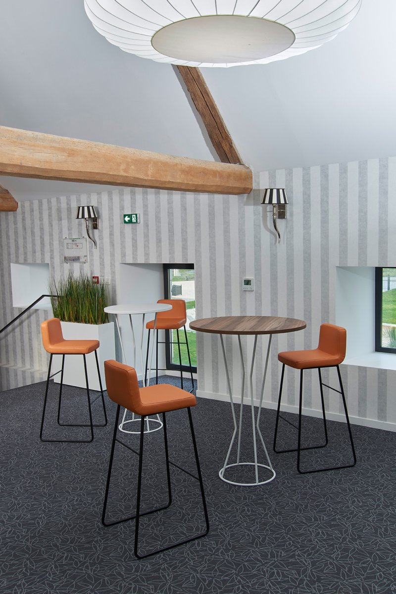 Grâce à la variété de ses finitions, la table haute Cyclo s’adapte à de multiples configurations :