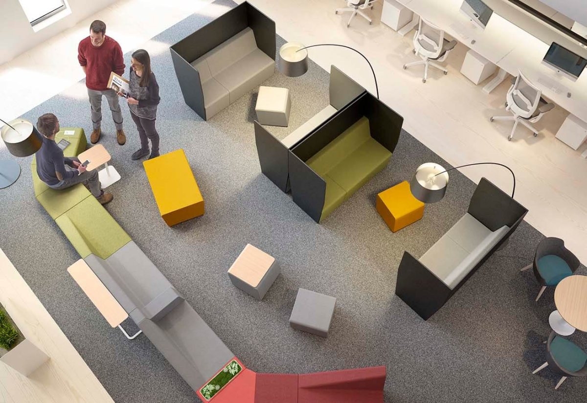 Parce que le bien-être au bureau impacte directement la productivité, la gamme Mendi offre un cadre décontracté où chaque collaborateur peut se ressourcer ou travailler sur son laptop hors des postes de travail classiques.