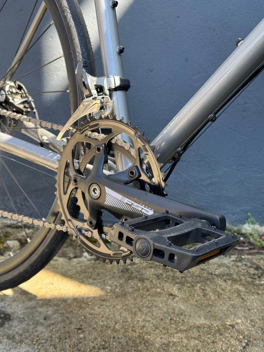 La Beyond Road Geometry offre un confort identique et une stabilité sur la route pour des sorties d’endurances et sur les chemins. Le Nicasio 1 est conçu à partir d’un cadre en Acier CrMo 4130, de freins à disques de fixations pour gardes boue, portes bidons et accessoires.