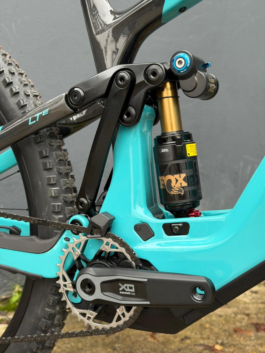 Enfin, le vélo est monté d’origine en 29 pouces, mais intègre un flip-chip sur la patte arrière. En outre, cela lui permet de passer facilement en configuration Mullet (29″ AV, 27,5″ AR) tout en conservant une géométrie optimale. Comme sur le Yeti MTe, le LTe permet d’ajuster la progressivité de la suspension arrière grâce à un flip-chip sur l’ancrage de l’amortisseur, offrant trois positions. (ex : 25 %, 30 % ou 35 % de progression). Ainsi, la courbe de suspension peut être adaptée à votre style de pilotage et au type de terrain.