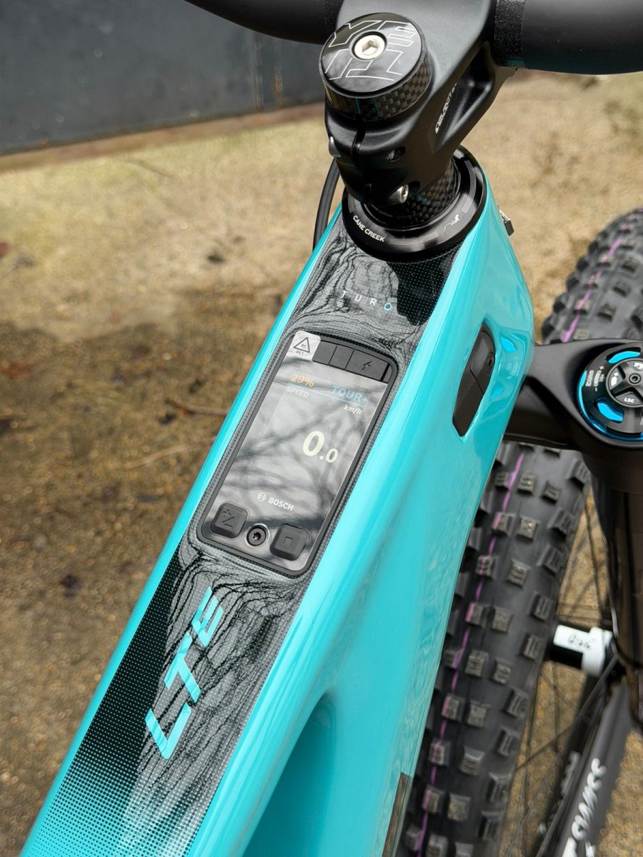 Le Yeti LTe est équipé de série de la batterie Bosch PowerTube de 800 Wh. Cette capacité devrait offrir une bonne autonomie visant à supporter de très grosses journées de ride (plusieurs milliers de mètres de D+ équivalent). Mais le cadre est également compatible avec la batterie de 600 Wh pour ceux qui souhaitent alléger le vélo.